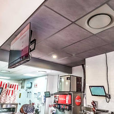 ● Rockfon concrete acoustic ceilings and matching grid.